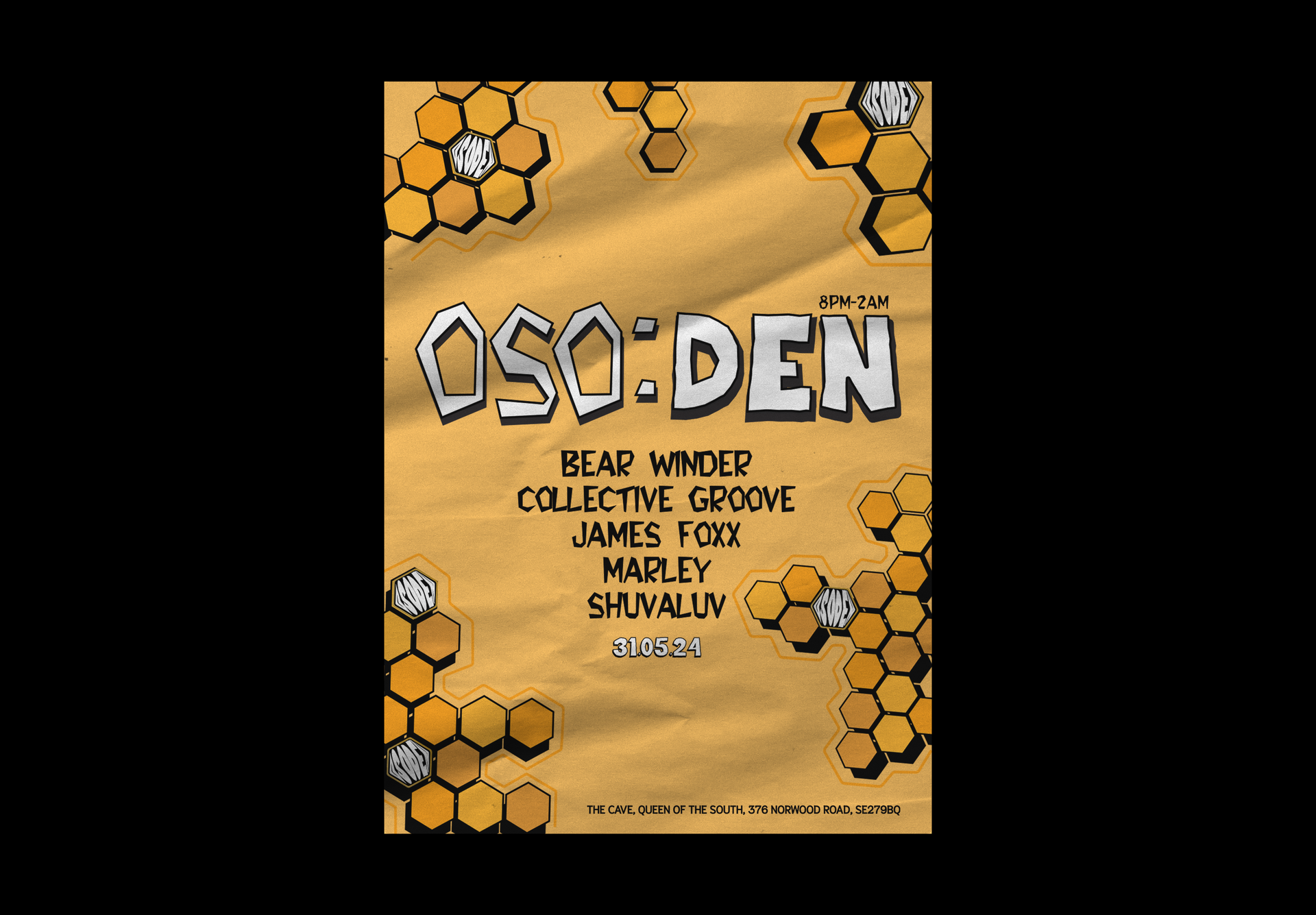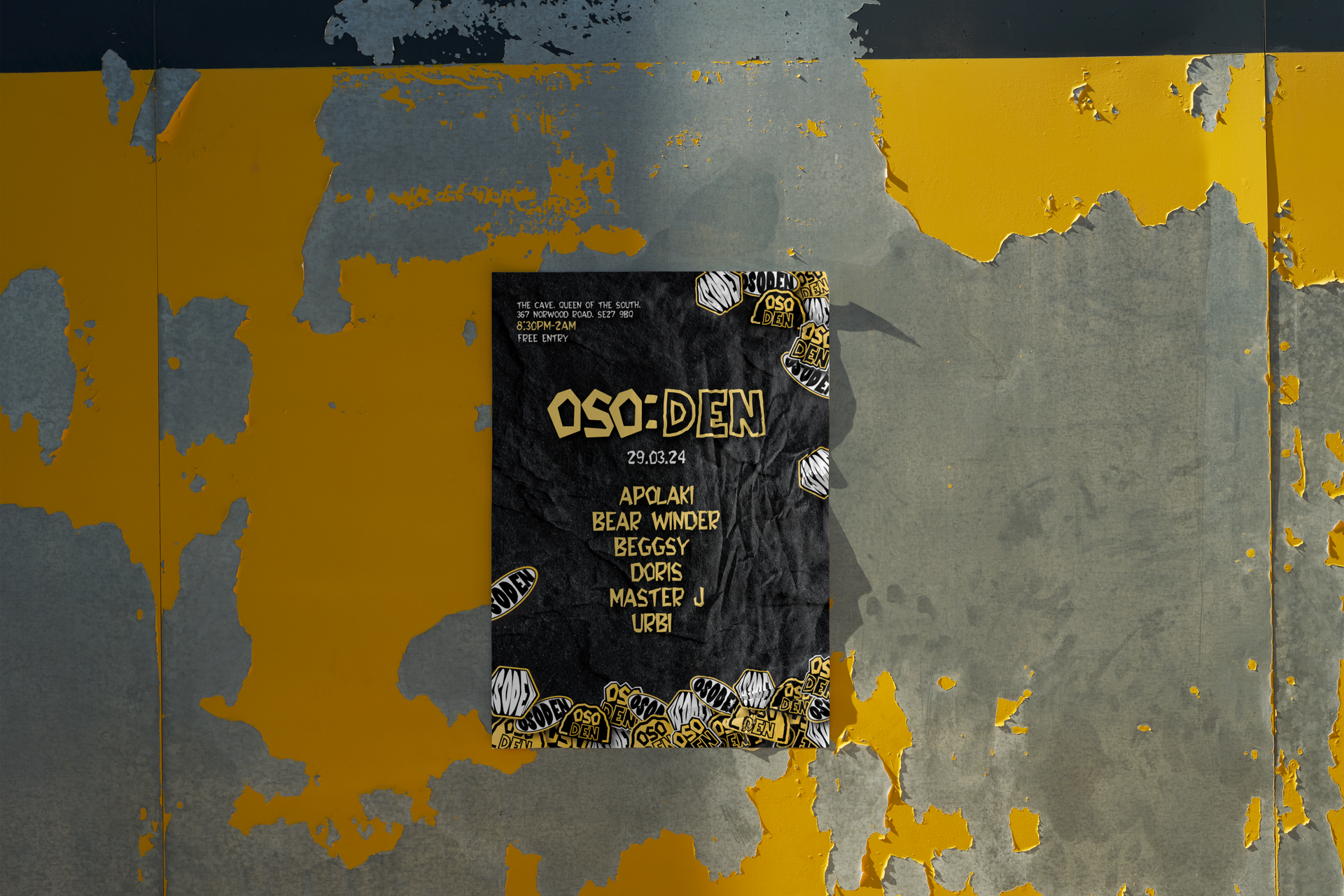 OSO:DEN is an underground music event label based in London, founded by renowned DJ Bear Winder. The vision for the brand was to create something that felt playful, expressive and full of personality, while still maintaining credibility within the underground music scene.